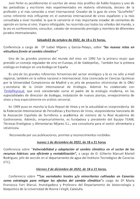 Nota: la cata tiene un precio de 10€. Para inscribirse, por favor contacten con D. Juan José Santana de León (email: jjsdeleon@gmail.com) quién tan amablemente ha proporcionado la información de esta jornadas.